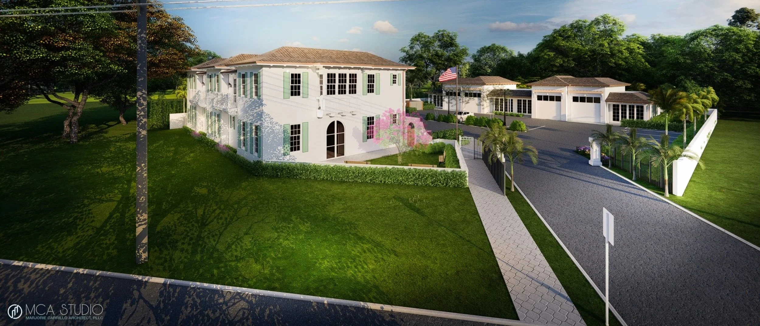 This proposed commercial development is located in the heart of the Hobe Sound Community Redevelopment Area (CRA). Featuring an Anglo-Caribbean architectural style, our concept honors the area’s coastal character, small-town charm, and walkable urban vision while maximizing the site’s potential. The style emphasizes the use of shuttered and divided-light windows, pitched cedar-shake hip roofs, private articulated wood balconies, coral stone accents, and a courtyard.